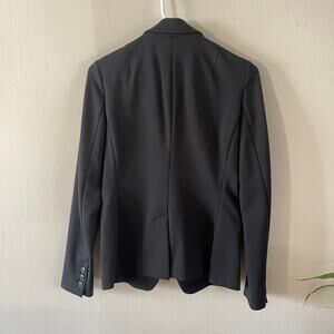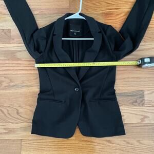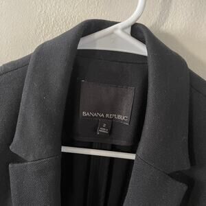 Tailored Banana Republic blazer in size 2. Features a sleek one-button closure in versatile black, perfect for professional settings or polished casual looks. A timeless wardrobe essential for workwear or everyday layering.