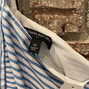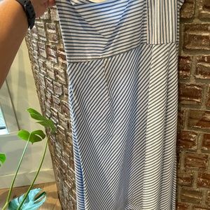 Beautiful blue and white pinstripe one shoulder dress from Banana. Brand new with tags, very flattering cut in a light cotton type material- size 14.