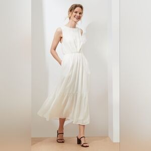 Banana Republic Open-Back Midi Dress White Snow Day sz small Whit Pockets