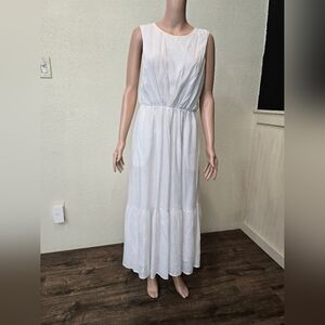 This elegant white sleeveless dress is perfect for any occasion. Its simple yet sophisticated design offers a timeless look. Ideal for both casual and formal events.
