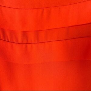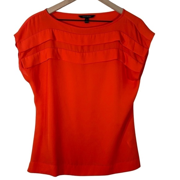 Lightweight, orange women's top with cap sleeves, crewneck, layered pleated top perfect for work, a night out, or a casual outfit.