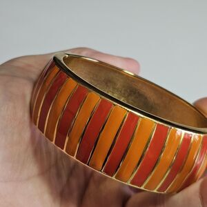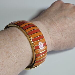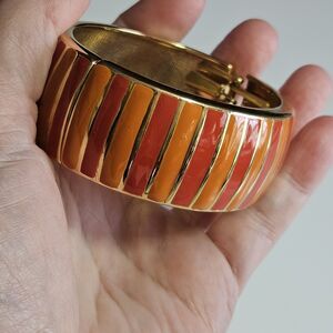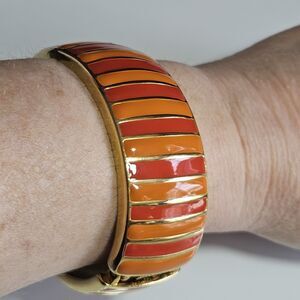 Banana Republic Orange Enamel And Gold Tone Hinged Bangle Bracelet