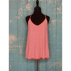 Banana Republic Women's Orange & White w/Geometric Print Racer Back Blouse S