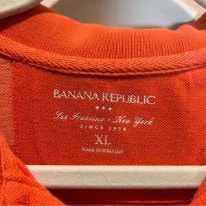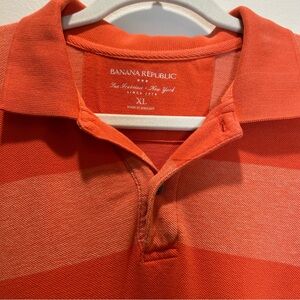 Banana Republic orange stripe polo shirt classic style. Features short sleeves with band, two button front closure, embroidered emblem