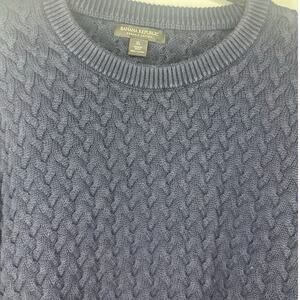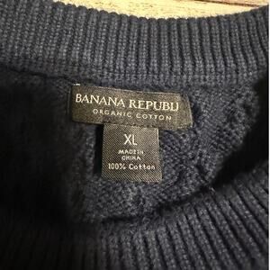 Banana Republic Organic Cotton Cable Knit Crewneck Sweater Men's Large Navy VTG