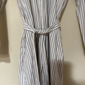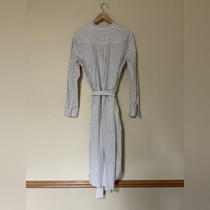 Banana Republic Organic Cotton Poplin Stripe Tie-Waist Midi Shirtdress White Tan