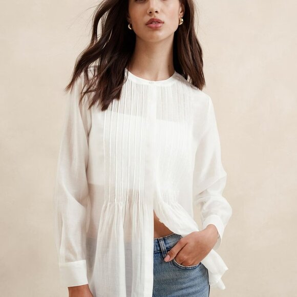 Banana Republic Outlet Pintuck Organza Sheer Blouse White Size S