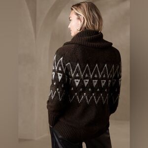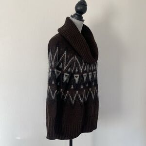 Banana Republic Oversized Chocolate Brown Wool Sweater Aztec Cowl Neck Sz L Boho