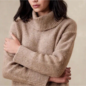 Banana Republic Oversized Turtleneck Sweater Women Medium Tan Wool Alpaca Cozy