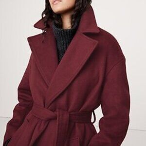 Banana Republic Oversized Wool-Cashmere Wrap Coat in Red Cherry Jam / Red Maroon.