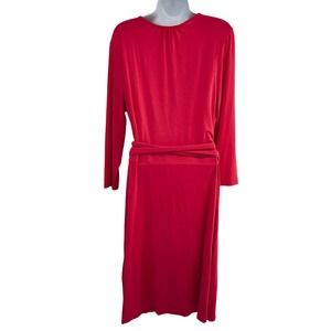 Elegant pink midi dress. Features a wrap design. Includes a matching waist tie. Perfect for any occasion. Size L Tall