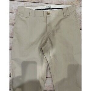 These Banana Republic Martin Crop Chino Pants in beige are a stylish and versatile option for women in size 10. Made with a blend of spandex and cotton, these pants feature a relaxed fit and straight leg style, perfect for casual occasions or travel. The slit ankle hem adds a trendy touch to these mid-rise pants, making them a chic choice for the city or preppy-inspired outfits in the summer, fall, or spring seasons. Easy to care for with machine washable instructions, these pants also offer comfort and stretch for all-day wear. 32 inch waist, 10.5 inch rise and 22 inch seam. Smoke free home.