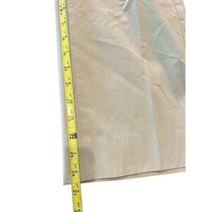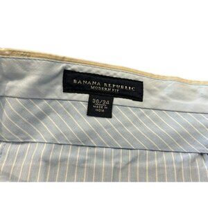 Elevate your wardrobe with these stylish Banana Republic pants. The tan striped pattern and classic comfort accents make them perfect for any occasion, whether it's a casual day out or a business meeting. The flat front chino style and modern fit provide a flattering look, while the lightweight cotton material ensures comfort all day long. NOTE: These pants are labeled 36 x 34; however, they have been altered to a 27 inch length. See Photos