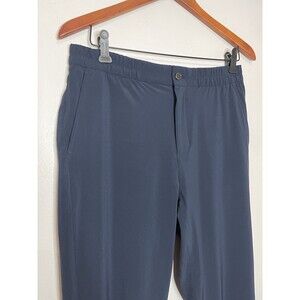 Preloved in great condition: button zip closure but waist had elastic. Some stretch. Laid flat 15" across. Pockets at waist, faux back pockets. Lightweight polyester blend pants. Some stretch.