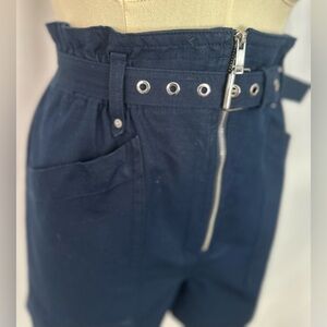 Banana Republic stylish paperbag dark blue shorts with a chic belt detail. Perfect for casual outings or a night out.