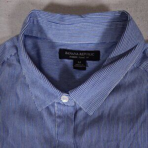 Banana Republic Parker Tunic Fit Hidden Button Shirt Womens Medium Striped