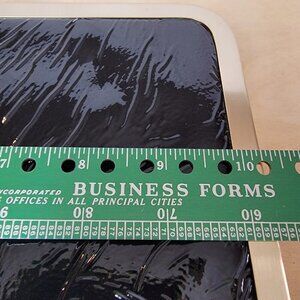 Measures about 10" wide x 5 1/2" tall. Top clasp.