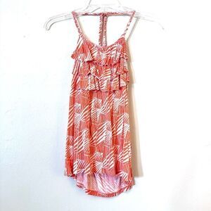 Banana Republic Patterned Ruffle Halter Rayon Tank Top Orange White XS