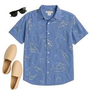 Banana Republic Periwinkle Blue Cotton Vintage Hawaiian Leaf Shirt Size M