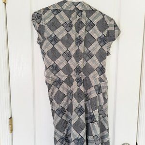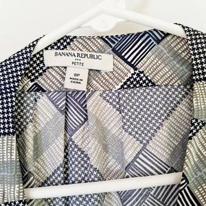 Banana Republic Petite Geometric Wrap Dress 8P, Blue, gray, white.