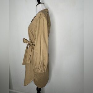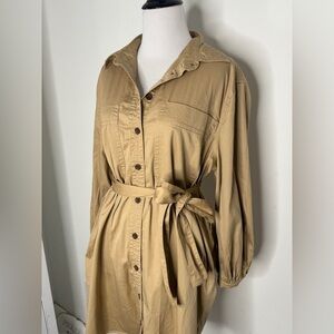 Banana Republic Petite Large Tan Button-Up Shirt Dress with Belt
