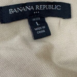 Timeless and versatile, this Banana Republic shirt dress in a Petite Large is a wardrobe essential. Featuring a soft tan color, button-front closure, and a self-tie belt to cinch the waist, it’s perfect for both casual outings and workdays. The relaxed fit with long sleeves and gathered details adds comfort and style, while the high-quality fabric ensures durability. Pair it with your favorite boots or flats for an effortlessly chic look. Gently worn and in excellent condition!