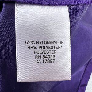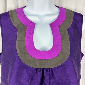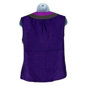 This Banana Republic sleeveless top features a striking keyhole neckline and a tri-color design, combining rich purple with complementary hues. Its nylon and polyester blend ensures a comfortable fit, suitable for both casual and formal settings. The petite sizing offers a tailored look, enhancing the wearer's silhouette.
