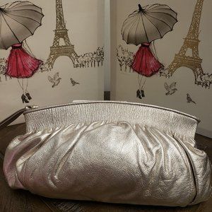 This Banana Republic Clutch is perfect when you need a bag you can carry in your hand not on your shoulder because this one is a wristlet! It is pewter, 100% leather with ruched details. This wristlet is in very good condition.