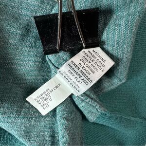 Banana Republic Pima Cotton, Modal, cashmere blend teal green micro striped crew neck long sleeve sweater size small. In excellent condition lovely lightweight fine knit with a really soft feel like silk yarn. Fine green stripes with broad solid green band across the shoulders, cuffs and waist.