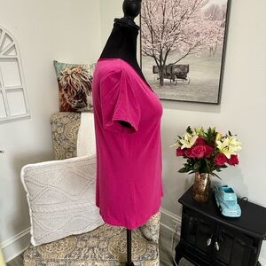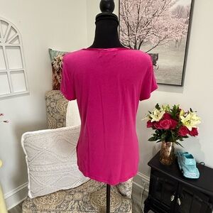 This vibrant pink t-shirt from Banana Republic features a fitted design with short sleeves, crafted from a soft and stretchy knit fabric. The scoop neckline adds a touch of elegance, making it a versatile addition to any wardrobe.