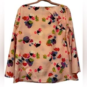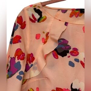 Banana Republic Lightweight Pull Over Floral Print Blouse with Ruffle Details at Shoulder and Hem