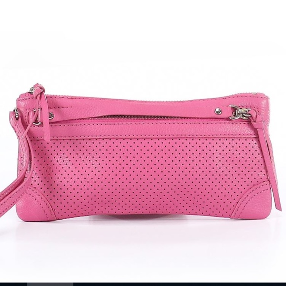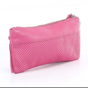 Super cute perforated leather pink Banana Republic clutch or wristlet, perfect size for a night out with your cell, lippie and other necessities. 9" x 4.5".