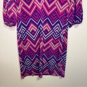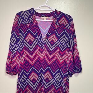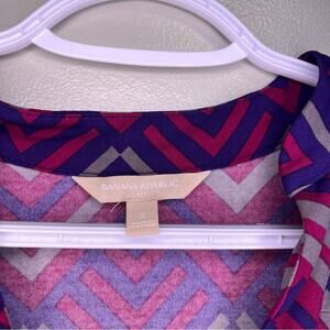 Banana Republic Pink & Purple Geometric Aztec Print Mini Dress V Neck Small