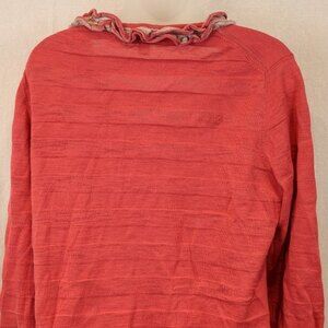Banana Republic Pink Ruffle Cardy Cardigan Sweater Striped XL