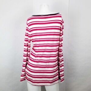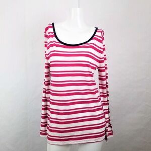 Banana Republic Pink & White Roll Tab Long Sleeve Striped Scoop Neck Relaxed Top