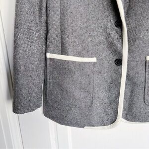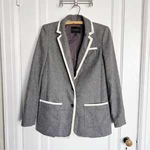 Banana Republic • Piped Grey Hack ing Jacket blazer two tone wool tweed long