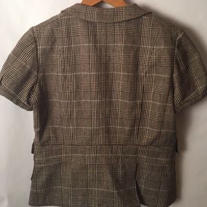So vintage and so cute! Slight poof on shoulder makes for a very feminine look. This is a bit on the vintage side so not seen typically anymore. Very lightly worn. Acrylic/cotton/wool/spandex blend. Really durable!