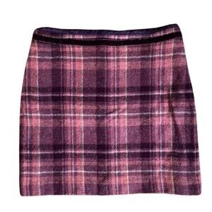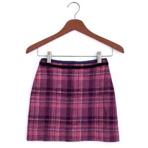 Keywords: Banana Republic plaid mini skirt, pink purple check skirt, fall mini skirt, wool blend lined skirt, classic preppy style, trendy plaid skirt, NWT size 2, back to school style