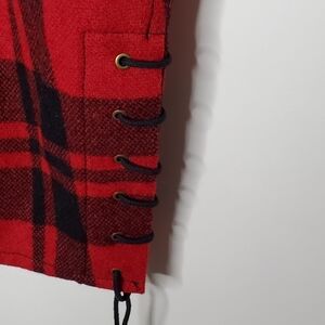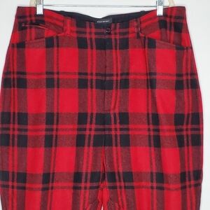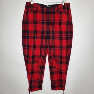Banana Republic Wool Blend Buffalo Plaid Pants Size 18. Red and black plaid button-fly pants with laces on the side ankle and reinforced inner leg panels.