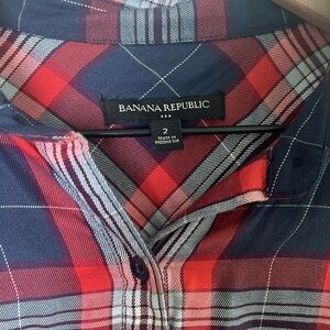Banana Republic Plaid Shirt Dress Red Navy White Size 2