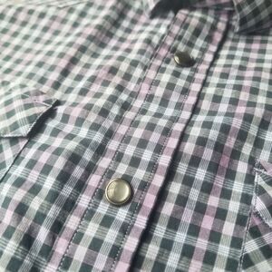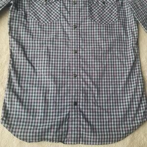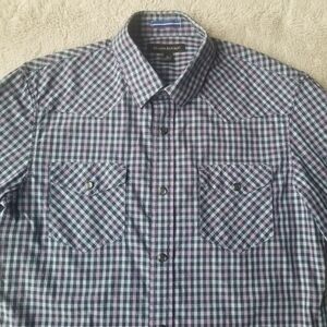 Banana Republic Plaid Shirt Men's S Blue Purple Grid Check Slim Fit Snap Closure
