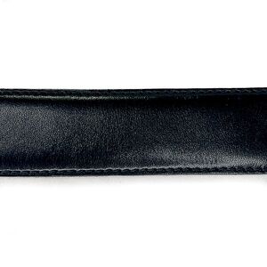 This plain black leather dress belt is backed in brown leather and ends with a square silver buckle. Measures 1.25" wide, it's a size 30" with an overall length of 36" and is in very good condition. Very nice belt.