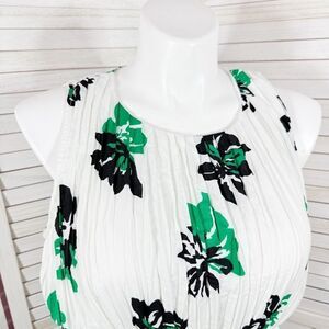 Banana Republic Pleated Chiffon Floral Maxi Dress White Green XL Sleeveless