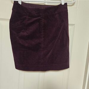 Banana republic factory corduroy plum pencil skirt size 2p length is 14.5in waist 15in, has zip closure measurements, is approximate, not exact, and is not doubled binA