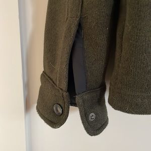 Soft and warm fleece shirt jacket with polartec. Snap front, double snap chest pockets and hand warmer pockets. Great layering piece of as a light jacket over a sweater. EUC. Forest/Dark green. Pit to pit - 21”, Shoulder - 17”, Length - 28”, Sleeve - 27”