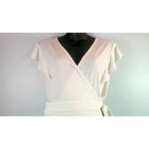 Banana Republic Polka Dot Blouse Tie Waist Flutter Sleeve Top Women's Large