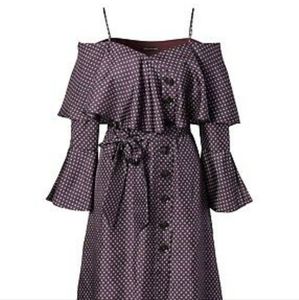 Banana Republic Polka Dot Palermo X Olivia Silk Ruffled Off the Shoulder dress.