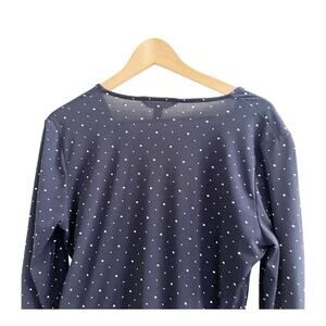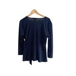 Banana Republic Polka Dot Wrap Peplum Blouse Jersey Stretch Size Medium Navy