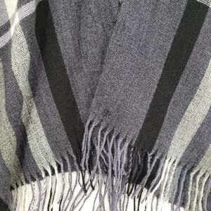 Banana Republic Poncho Womens One Size Blue Gray Plaid Fringed Wrap Cape Shawl