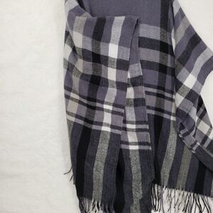 Banana Republic Poncho Womens One Size Blue Gray Plaid Fringed Wrap Cape Shawl